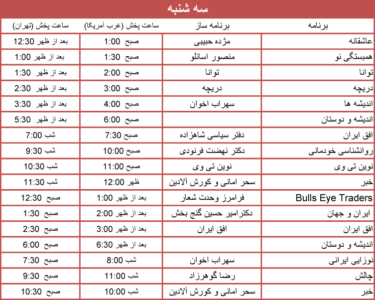 جدول برنامه ها