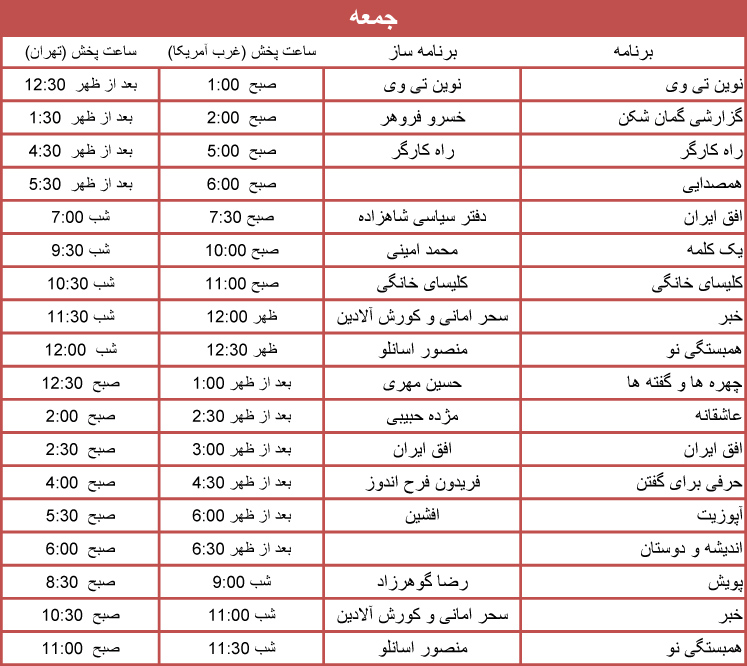 جدول برنامه ها