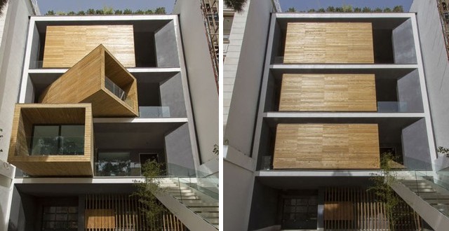 در این نوع طراحی٬ اشکال بازشوها از پنجره های مربع و مستطیل شکل به احجام مکعبی قابل چرخش تغییر یافت.ضمن اینکه خود این احجام دارای فضاهای داخلی تعریف شده٬ بازشو و تراس نیز می باشند و صرف نما سازی را نخواهند داشت.